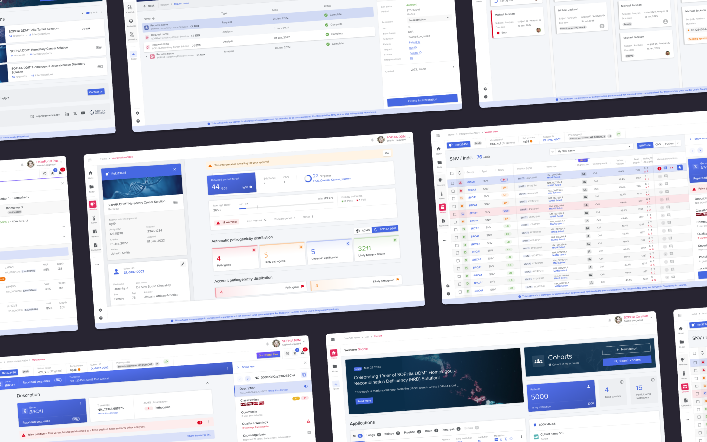 At SOPHiA GENETICS, I focused on crafting the web versions of both new and established healthcare products, designing complex genomics dashboards, variant interpretation workflows, and clinical data views for doctors and clinicians.